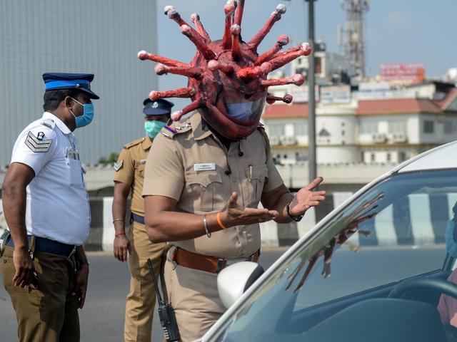 Indian Police Officer Wears Coronavirus Helmet To Scare People From Coming Out News Rojak Daily